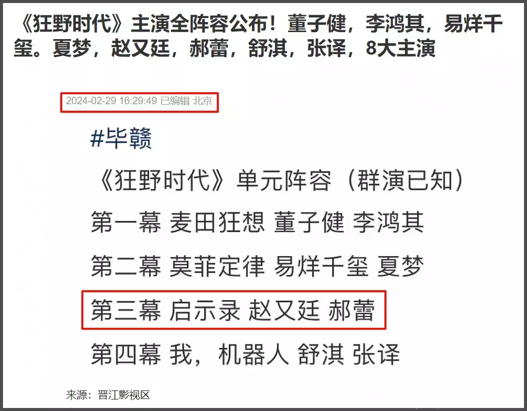 但细看电影海报就会发现,大V爆料的演员基本都在海报上,但却没有郝蕾,各大平台的演员表上也没有郝蕾,就像郝蕾从来没有出演过一样。但早在去年就有群演爆料电影阵容,详细爆料郝蕾和赵又廷合作出演第三幕“启示录”。