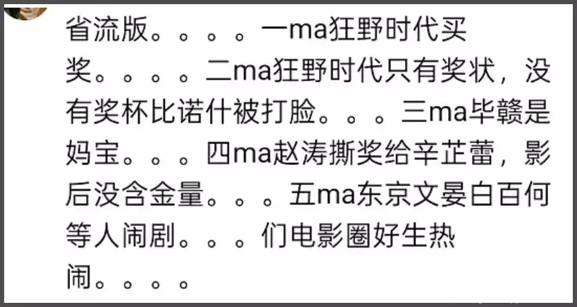 但也有网友表示,“撕奖”并不代表是走后门,只是评委作为中国人,在评审团如果有话语权能认真讲解,更容易帮评审团理解影片,中国电影得奖的概率也会高一些,要说控制评审团投票,那是不太可能的。